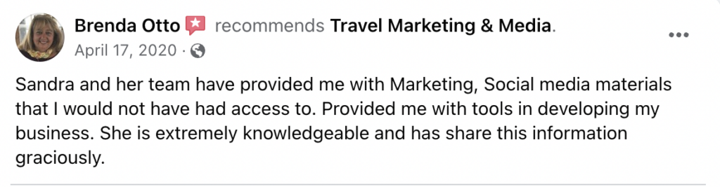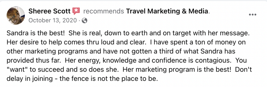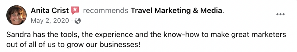 Sandra created Travel Marketing & Media, a marketing agency for travel business owners who want to create a consistent stream of new clients so that they can have a wildly profitable travel business that brings them joy.