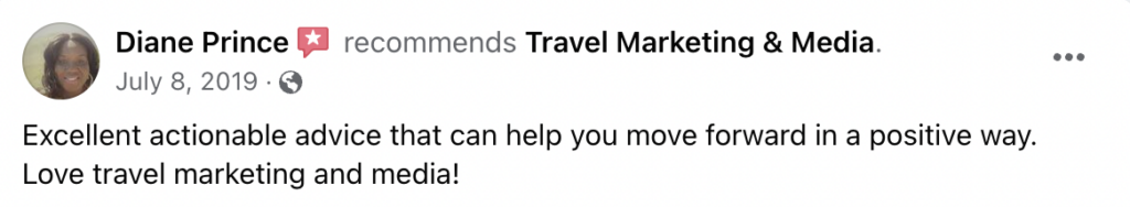 I create and teach our signature online course, our masterclasses, workshops and host the Travel Marketing Townhall meetings. I also provide webinars and keynotes for host agencies, consortia and large travel industry events.