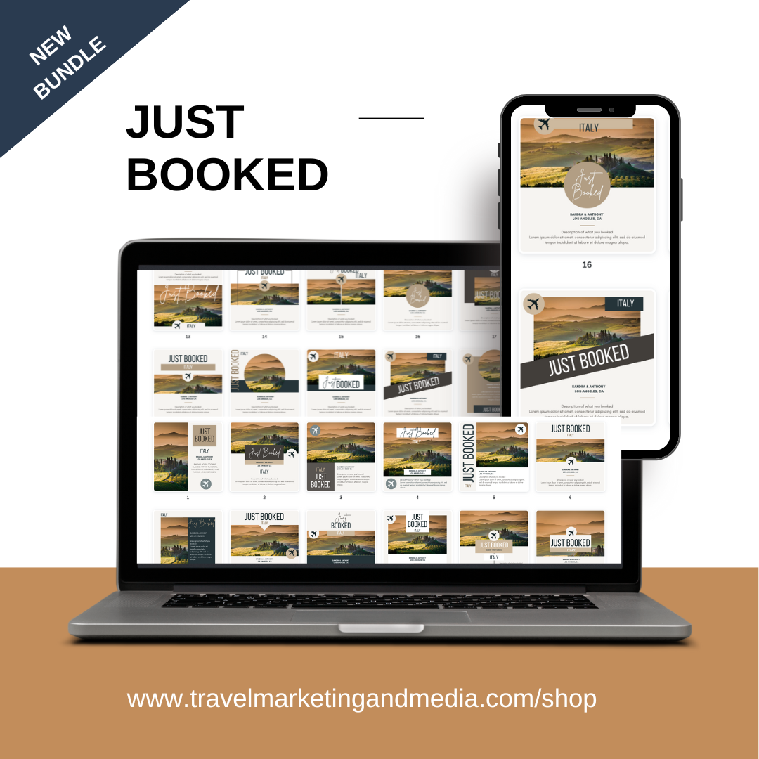 Show off your most recent bookings with a “just booked” social media post. It’s the most effective and efficient way to show that other people trust you. By including the content that we have placed on each slide, you’ll show off who your clients are (first name only), where you sent them (listing the destination and showing a spectacular image of it), as well as listing out exactly what you booked for them. When it comes to the caption we suggest writing only a few sentences – when they are leaving, what they wanted from their vacation and why you loved working with them. Of course, don’t forget to add a call to action.